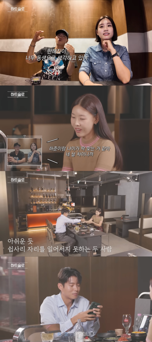 In the video, Han Hye-jin shyly handed Ha Jun some meat. Following Lee Si-eon's instructions, Ha Jun took a shot of beer to lighten the mood. They naturally continued their conversation while confirming their mutual interest.