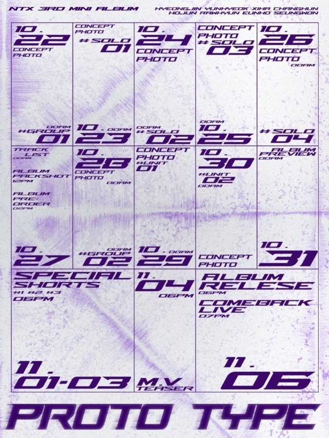 Boy group NTX is making a comeback with a new mini-album. NTX revealed the timetable for their third mini-album, PROTO TYPE, at midnight on October 21 through their official SNS. They plan to release the album on November 6.