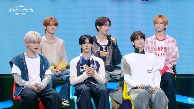TWS presented the rock version of "Oh Mymy: 7s" for "10CM's Ssedam Ssedam," marking its first performance in Korea. 10cm and TWS have built a special bond through various challenges. The youngest member, Kyungmin, expressed regret that he could only exchange a few words with 10cm during the challenge filming, wishing they had talked more. 10cm apologized for this, and Kyungmin and Youngjae performed a duet of "Phoncert," showing their unwavering fandom.