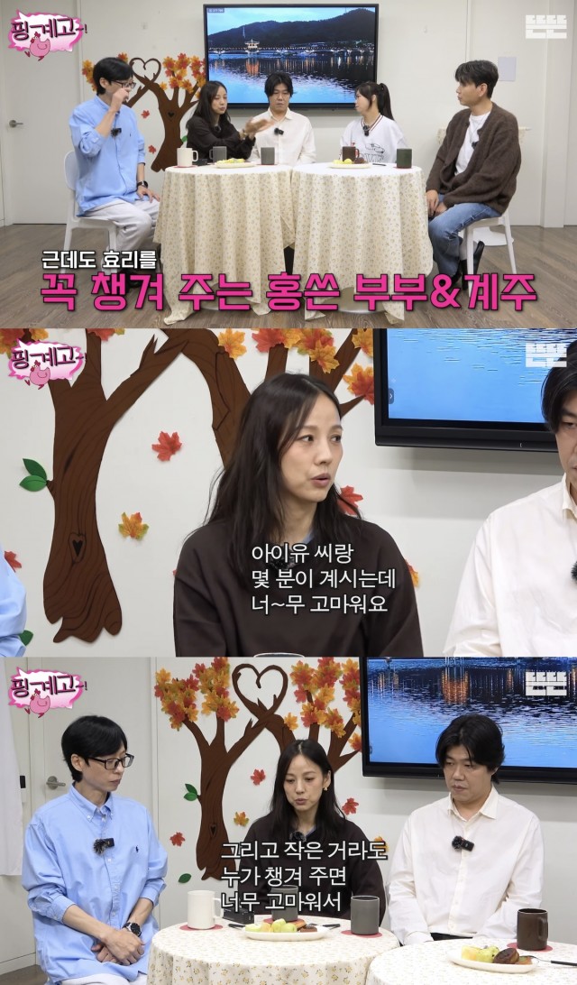 Singer Lee Hyori publicly expressed her gratitude toward junior singer IU. Recently, Lee Hyori appeared on the YouTube channel 'DdeunDdeun' in the content 'Pinggego' and mentioned IU, conveying her thanks. In the video featuring Lee Hyori and Lee Sangsoon as a couple, along with comedian Hong Hyunhee and Jayceon as a couple, Lee Hyori shared an episode about gifting apple mangoes prepared from a friend's mango orchard in Jeju.