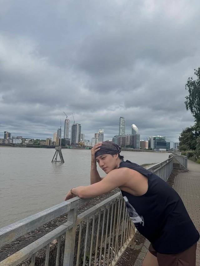 Kai also leaned against the riverside railing, raising his arms above his head with a relaxed expression, and caught attention by sharing a warm gesture to fans by making a heart shape. Overall, these photos, which exude healthy energy, have received positive responses from fans.