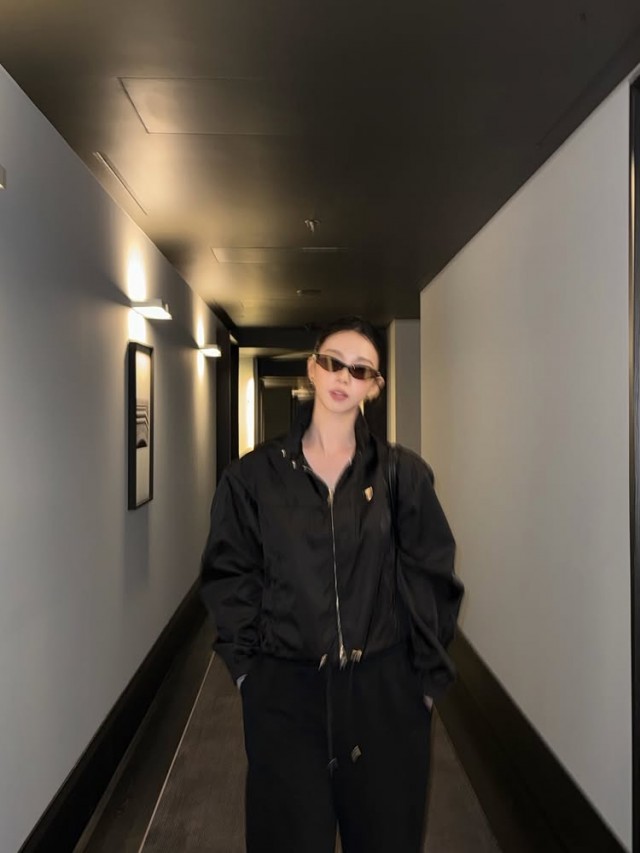 Singer Karina caught attention with her everyday fashion emphasizing a comfortable style. Recently, Karina posted several photos on her SNS with the short phrase, "Comfortable shoes for comfortable pants." Wearing a chic outfit matching a black jacket and pants, she created a sophisticated atmosphere by posing in various ways while wearing sunglasses in a dark hallway.
