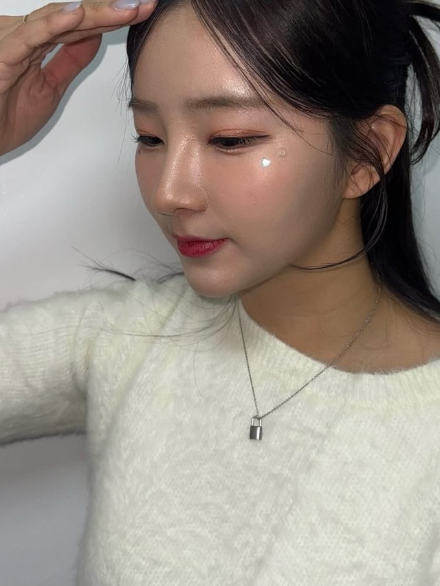 In the released photos, Kim Jin-ah drew attention as she smiled brightly while pointing to her face, wearing a black leather jacket and a red top. Another image captured her attending an official event, posing with her back turned under the large venue lights, dressed in a white top and blue skirt. Additionally, a charming photo was shared showing her inside a cafe wearing a light pink top and covering her lips with her fingers, creating a lovely atmosphere.