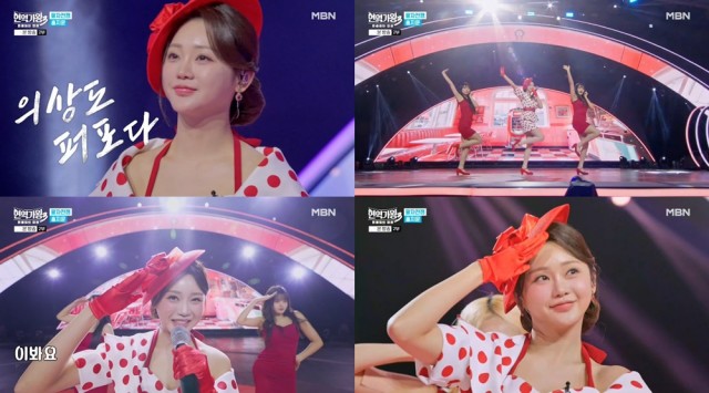 On stage, she chose to perform Kim Ji-ae's "Mr. You." Hong Ji-yoon took the lead visually by wearing a red dot-patterned outfit with a retro vibe that she made herself. She perfectly delivered the song with her sweet tone and strong vocal skills. Her experienced stage presence and lively dance further enhanced the completeness of the performance.