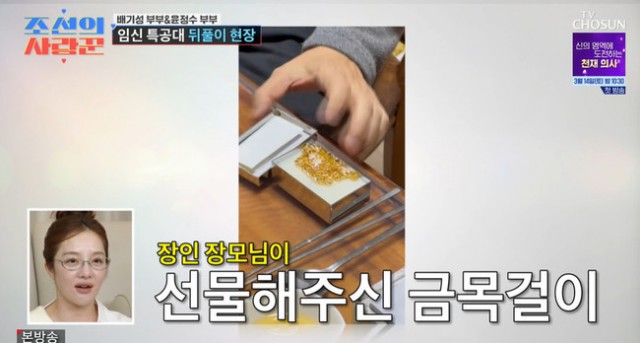 Broadcaster Yoon Jung-soo recently shared an update on his life as a beloved son-in-law during a broadcast. On the March 9th episode of TV Chosun's "Joseon's Lover," Yoon Jung-soo and his wife invited singer Bae Ki-sung and his wife to their home. Yoon Jung-soo caught viewers' attention by appearing on the show wearing a gold necklace. Upon seeing Yoon Jung-soo's necklace, Bae Ki-sung joked, "Is that a pig's chain?" Lee Eun-bi complimented the necklace, saying, "The chain is really pretty."